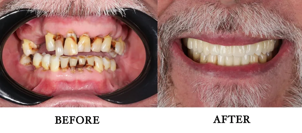- Dental implants with bone graft support when needed