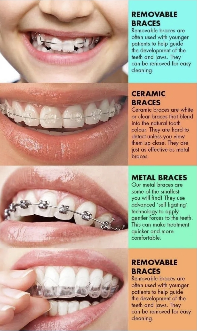 - Metal & ceramic braces for precise alignment